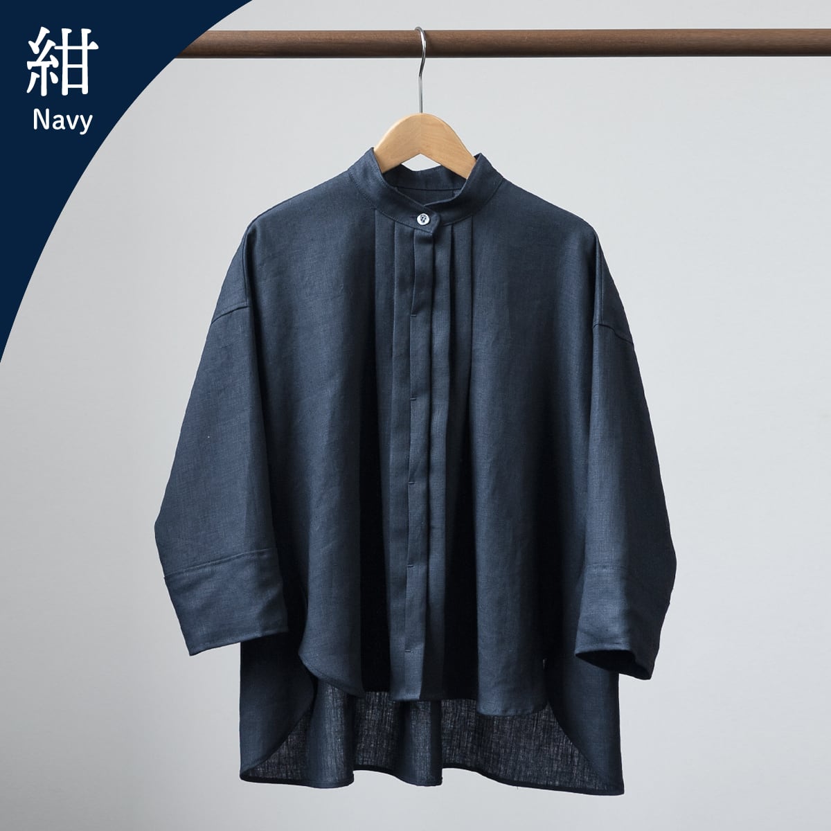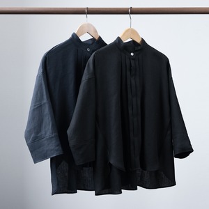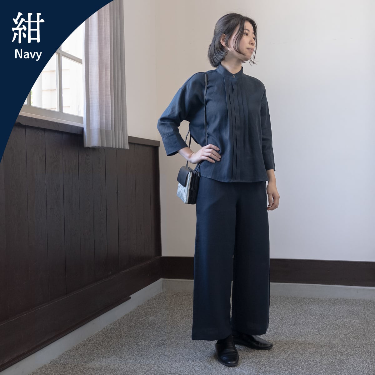 【リネン100%】きれいめタックブラウス【黒色/紺色】