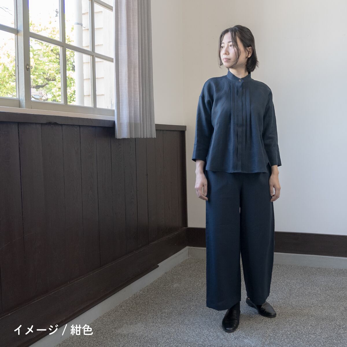 【リネン100%】きれいめセミワイドパンツ【紺色】