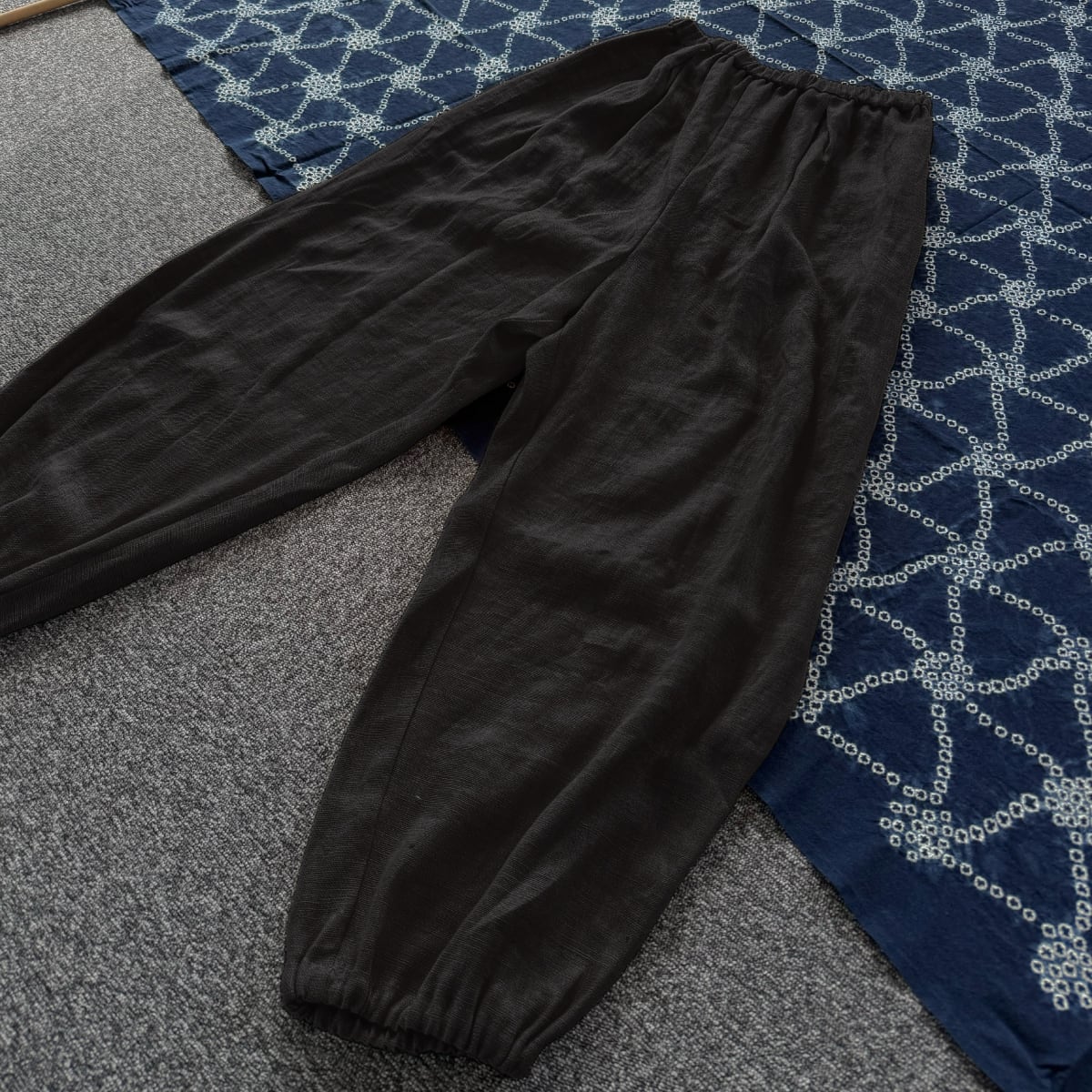 【ユニセックス】【リネン100%】もんぺパンツ【黒色】