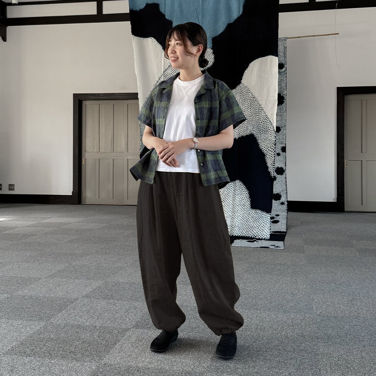 近江上布伝統産業会館オリジナルブランド「Omi-Jofu」からリネン100%素材のリラックス「もんぺ」パンツができました。