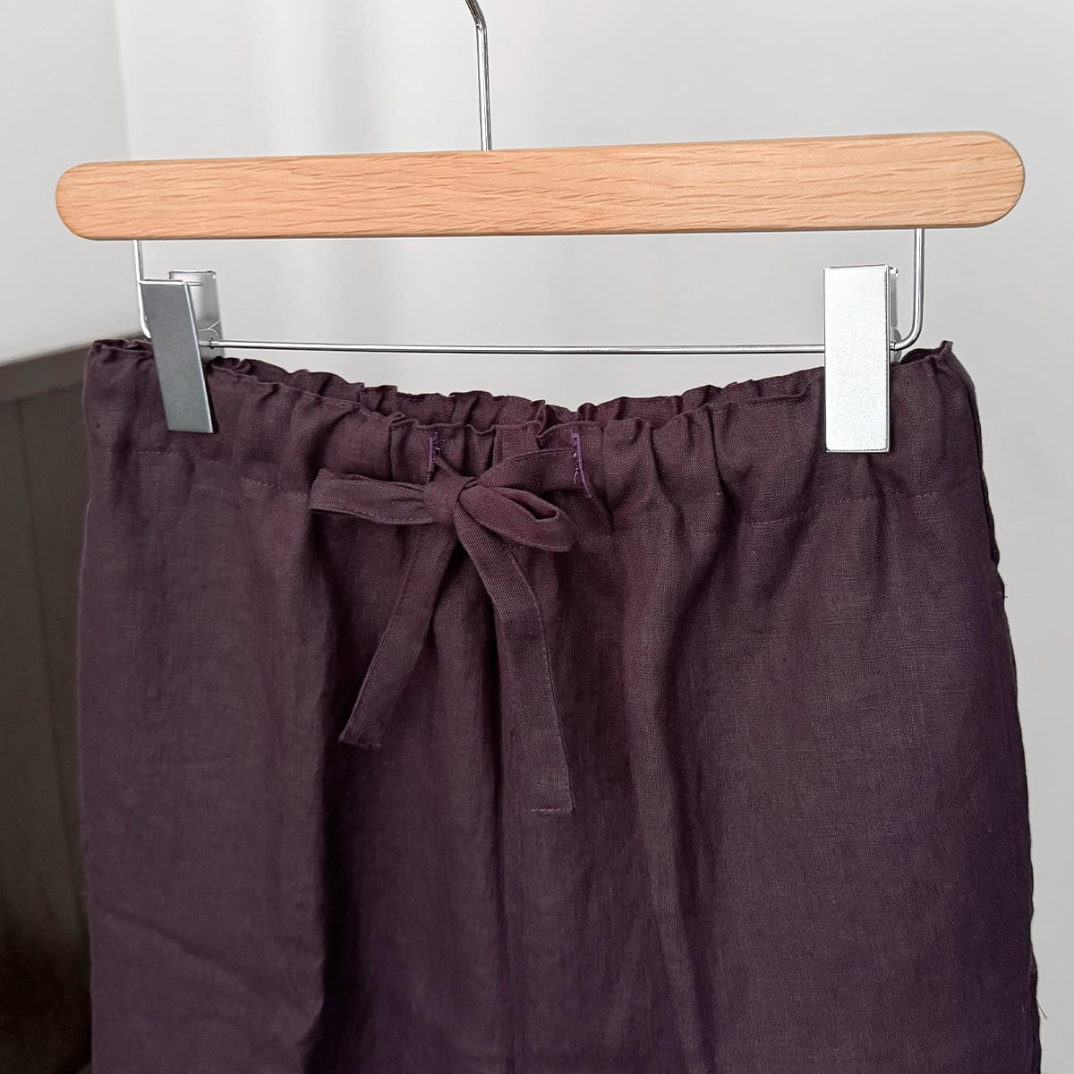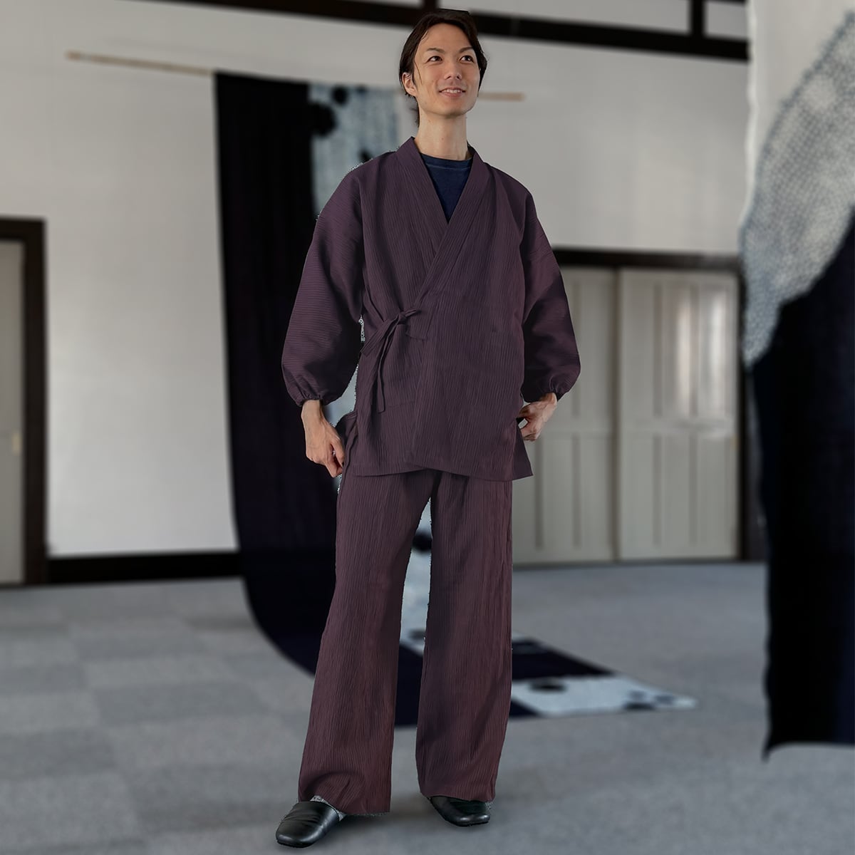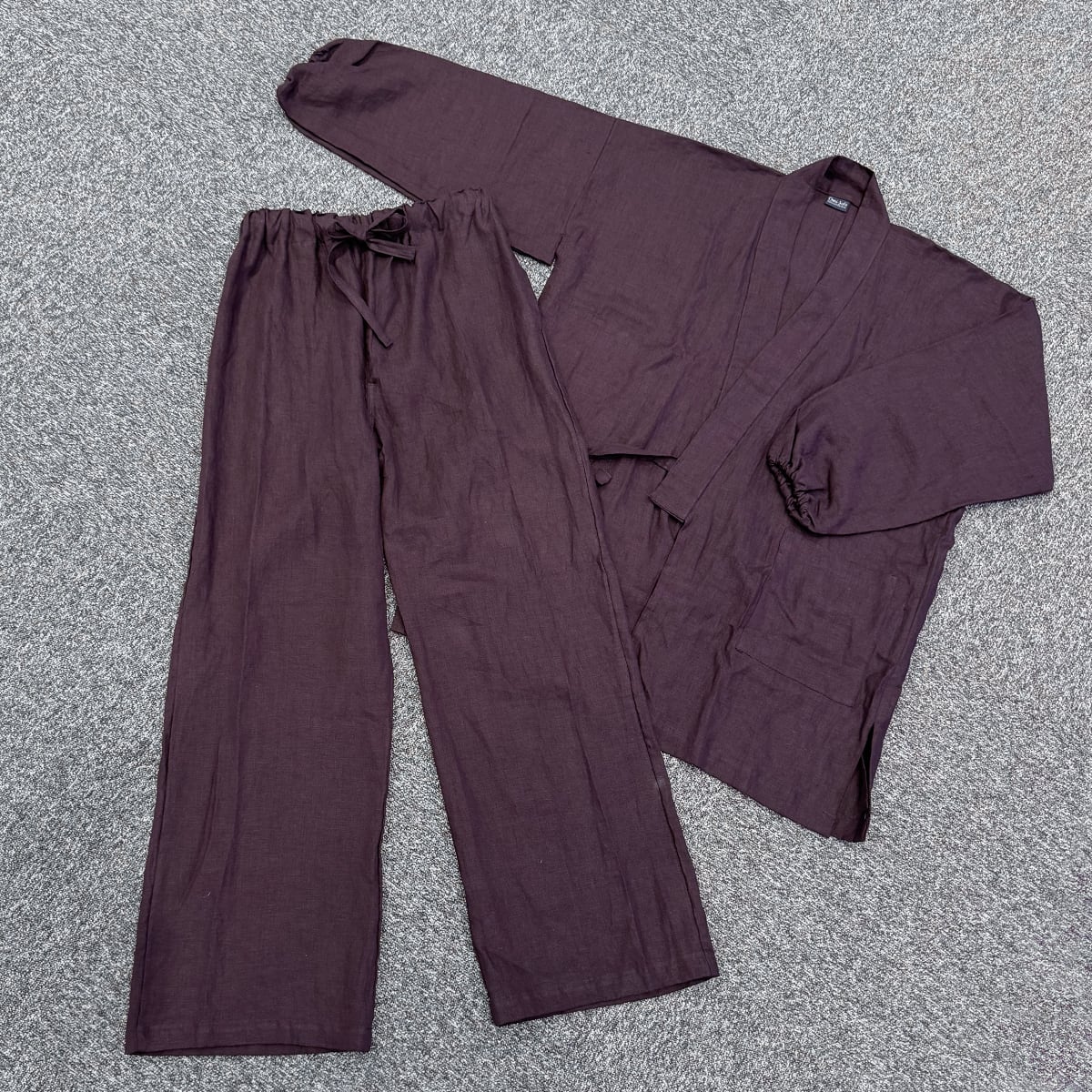 【男女兼用】【リネン100%】作務衣 上下セット【紫色】パンツサイズ2種