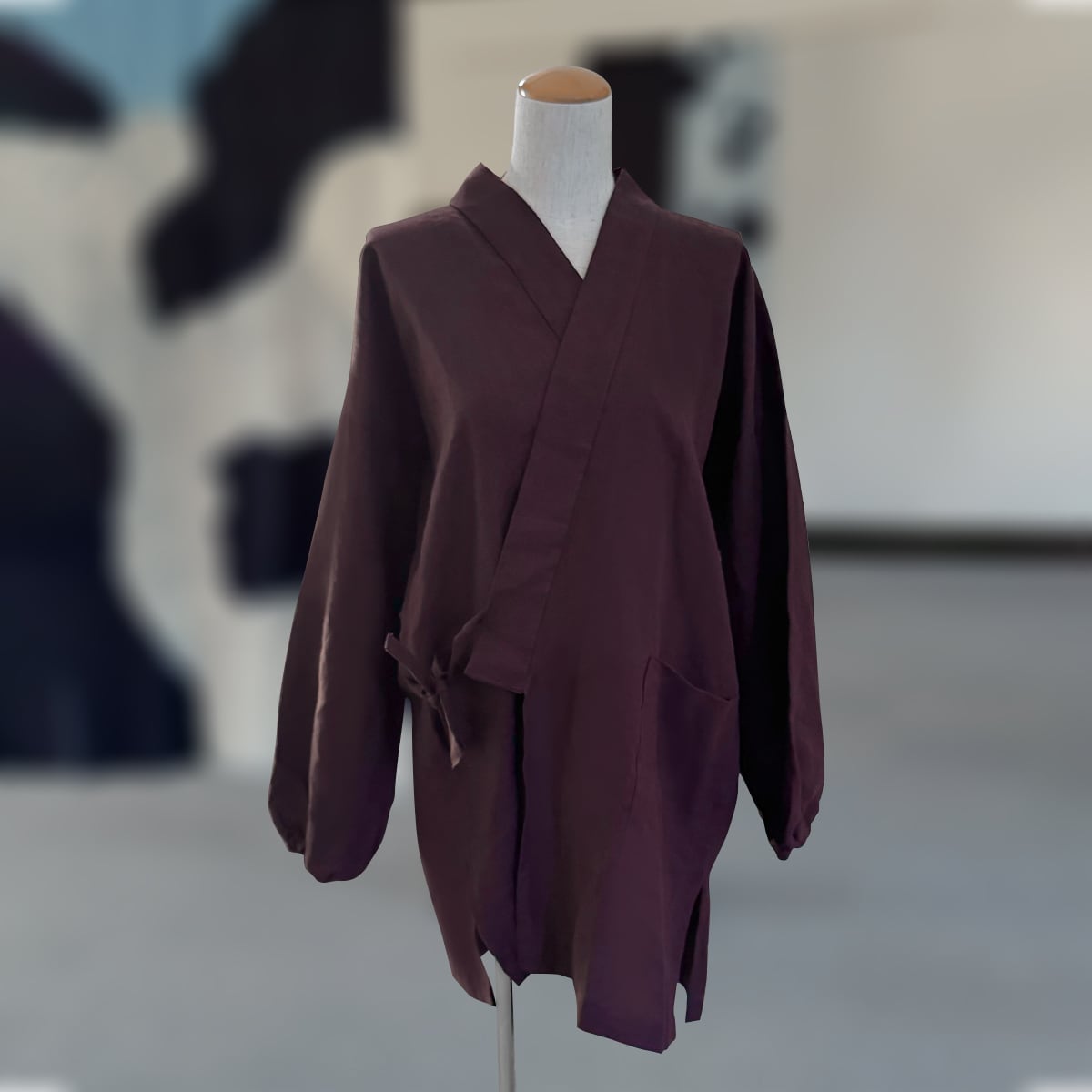 近江上布伝統産業会館オリジナルブランド「Omi-Jofu」麻の作務衣上下セットです。