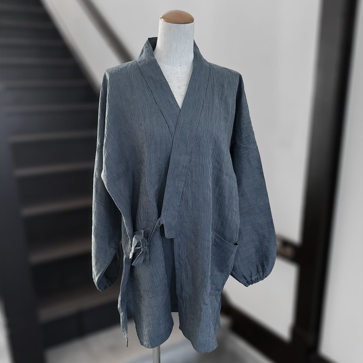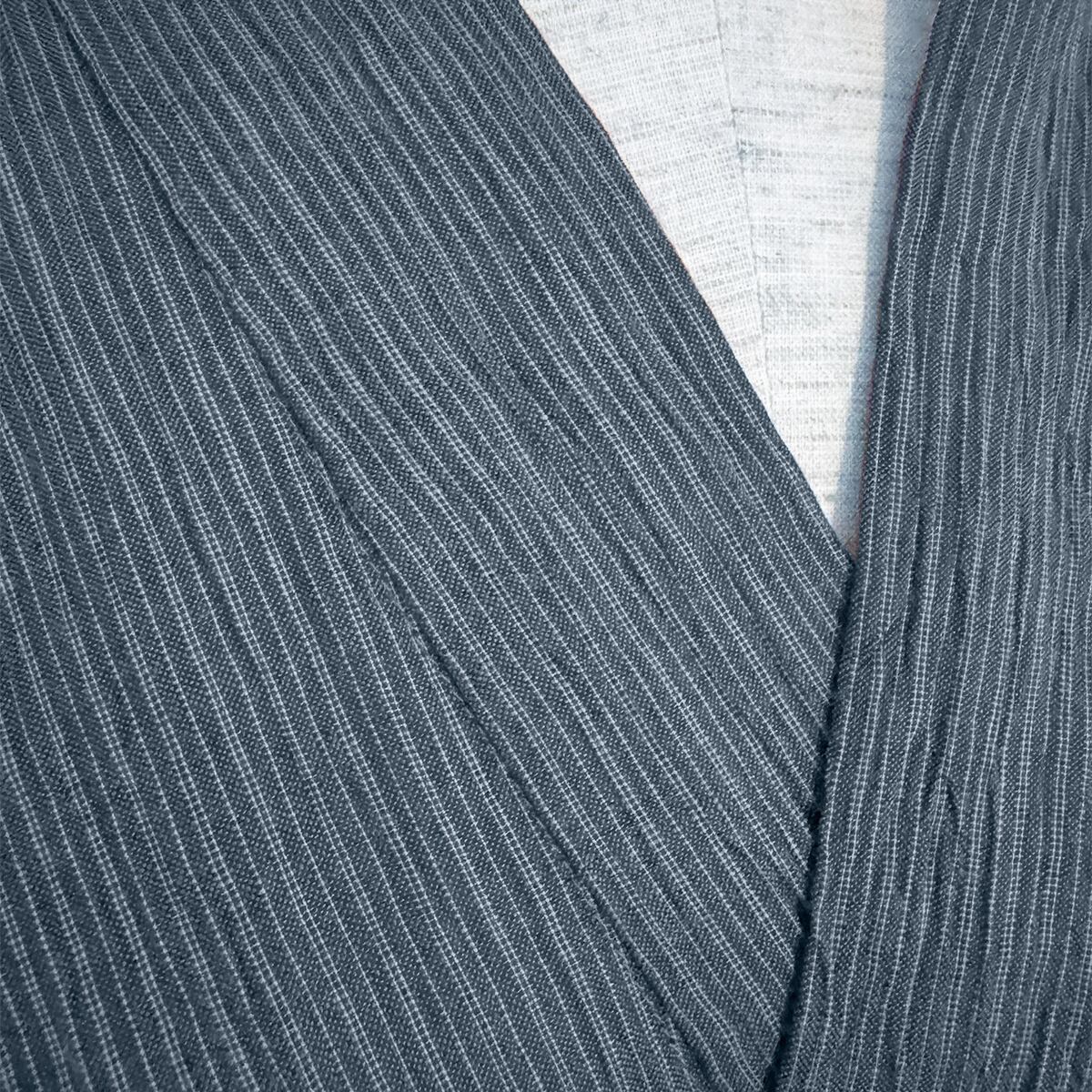 【男女兼用】【ラミー100%】作務衣 上下セット【藍色縞柄】パンツサイズ2種