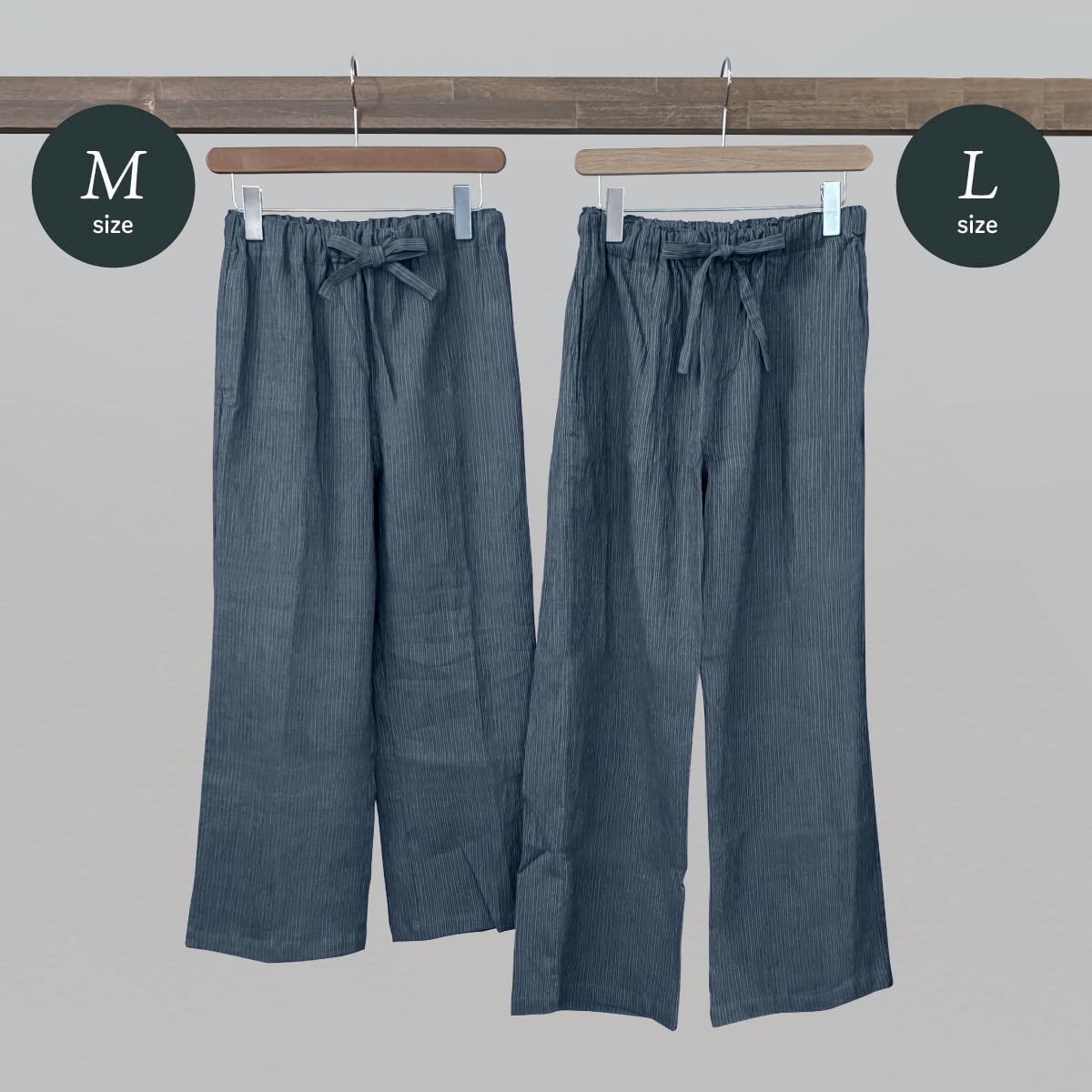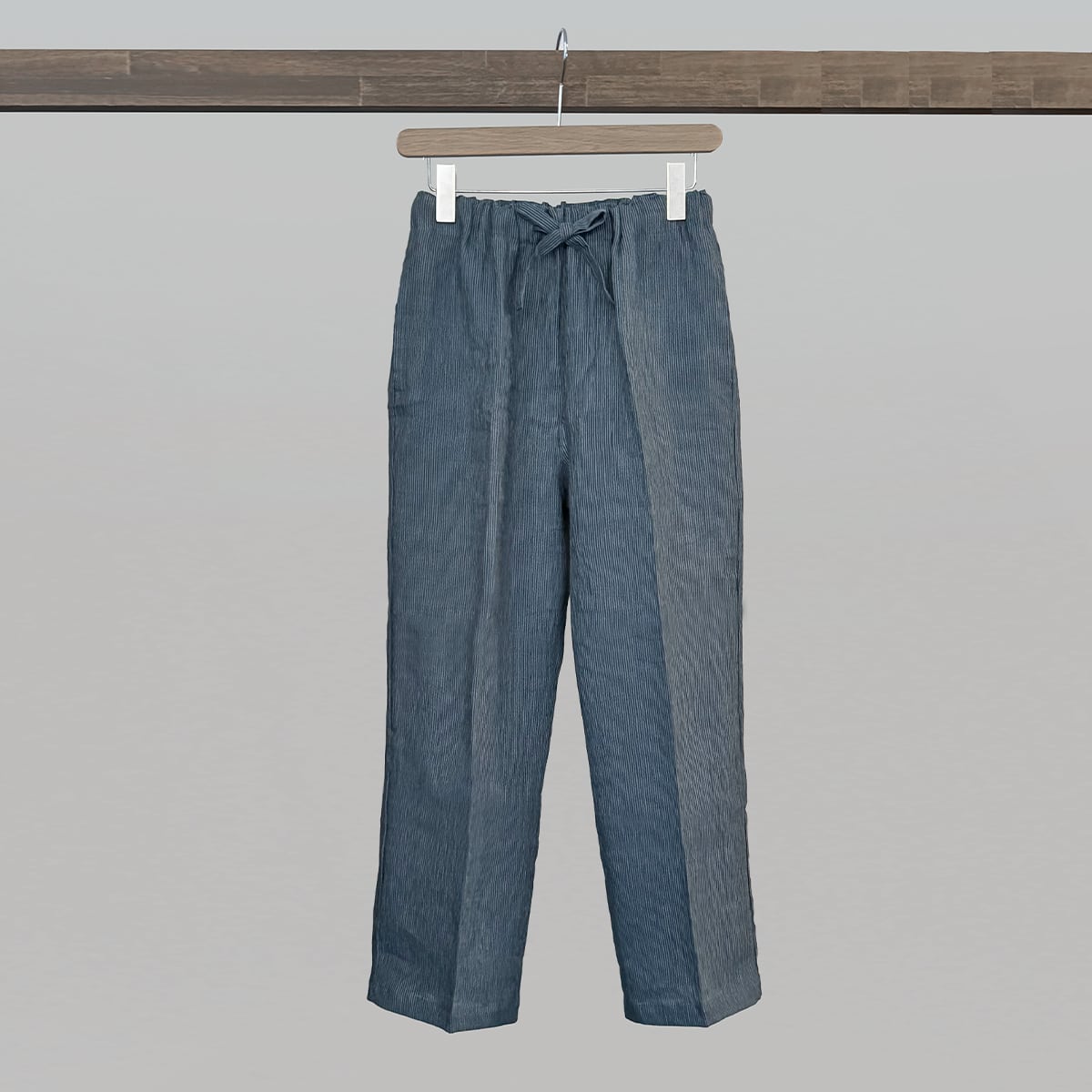 【男女兼用】【ラミー100%】ストレートパンツ【藍色縞柄】サイズ2種