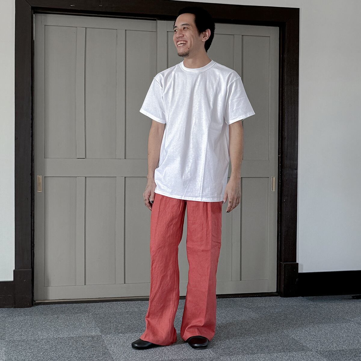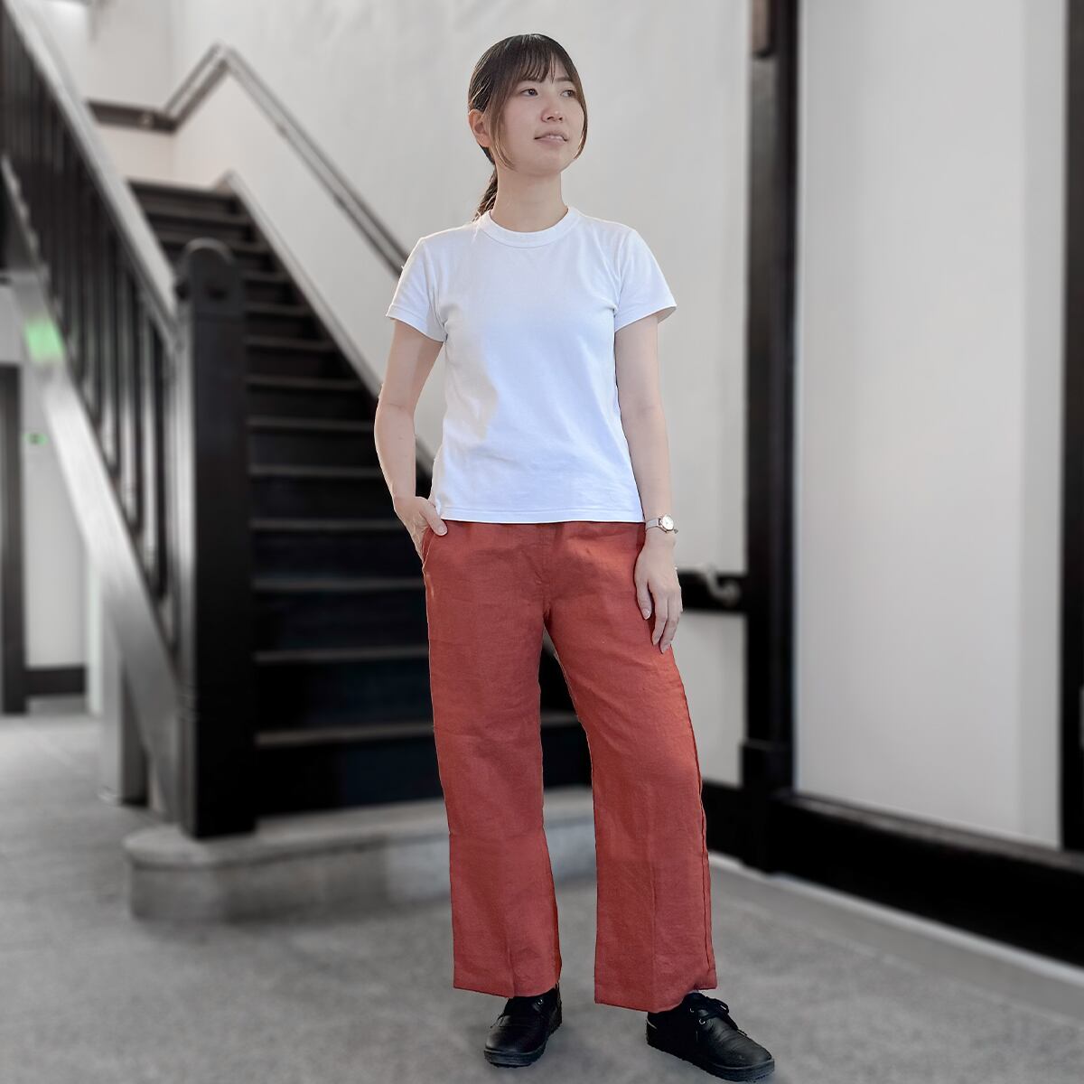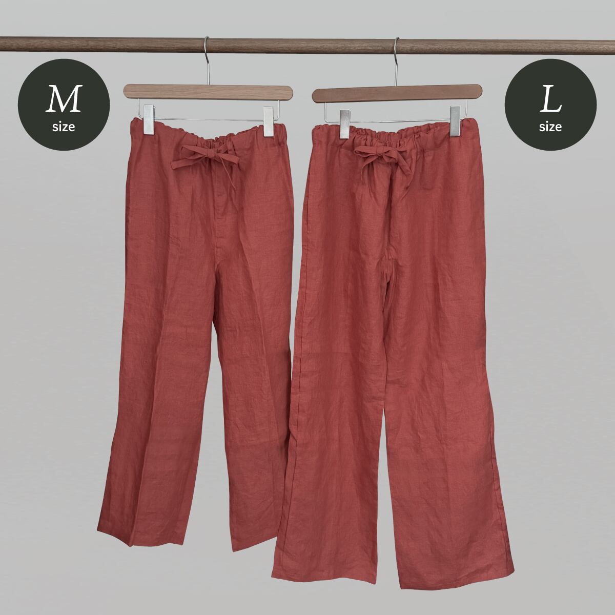 【男女兼用】【リネン100%】ストレートパンツ【橙色】サイズ2種