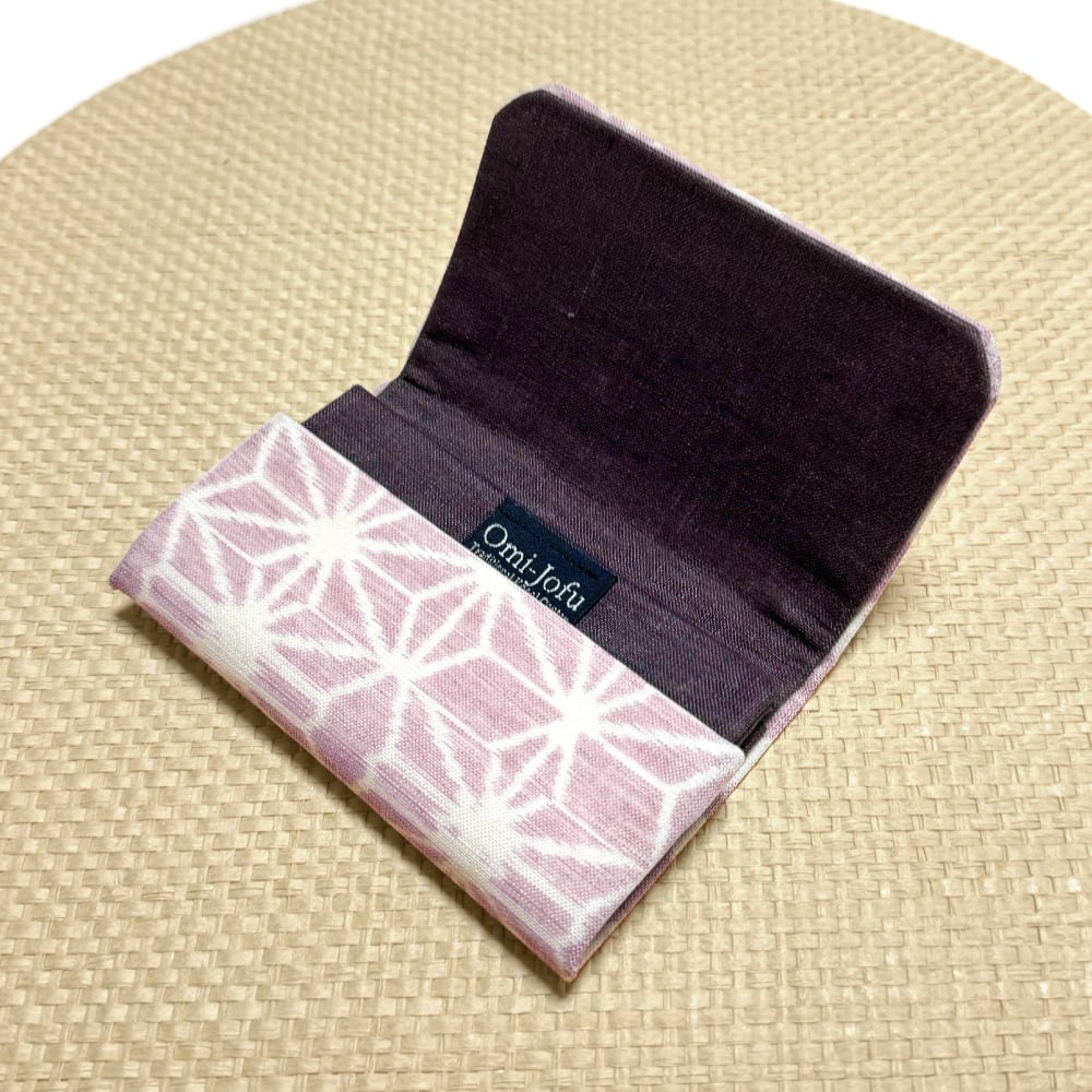 Omi-Jofu 【近江上布:絣】名刺入れ/(ピンク)麻の葉柄