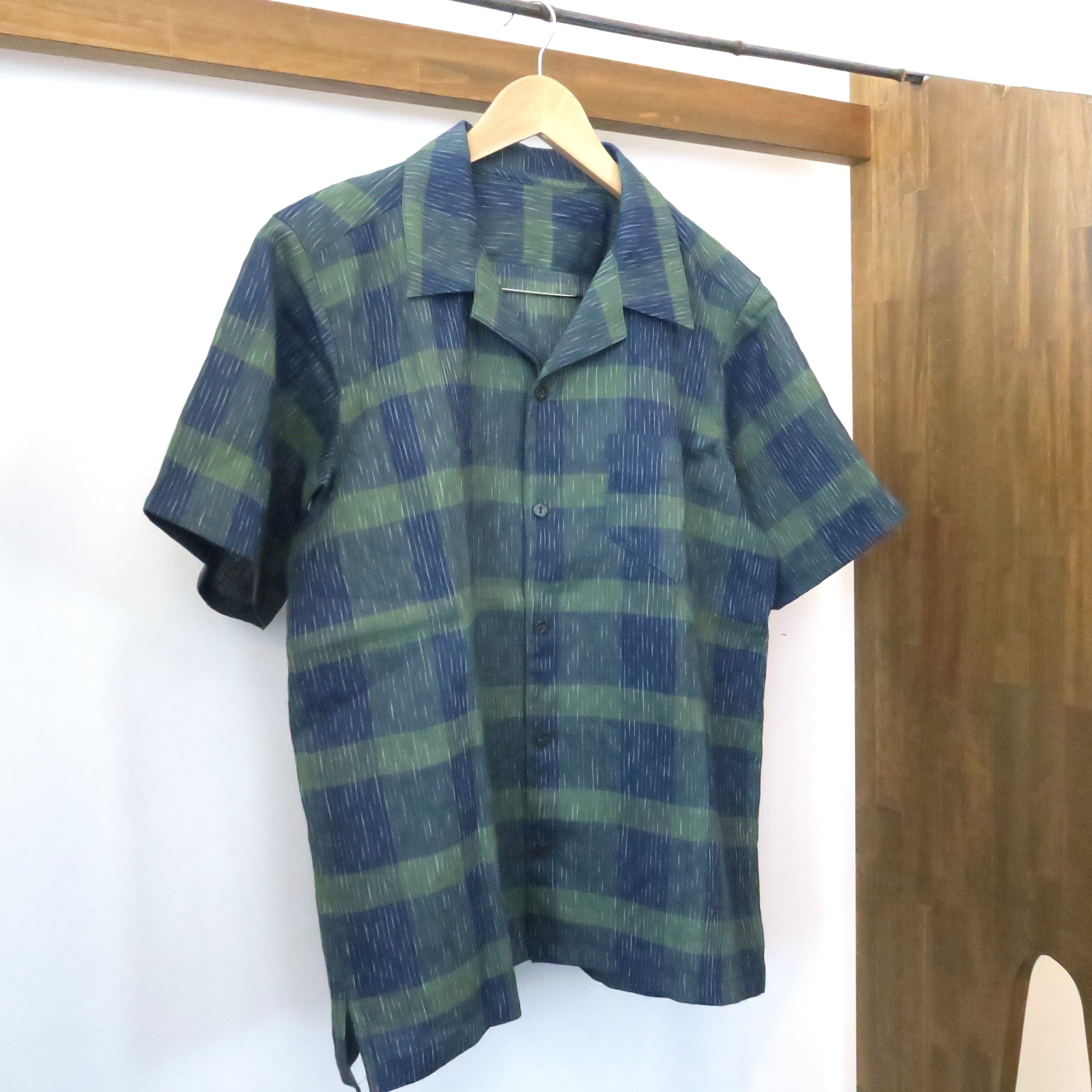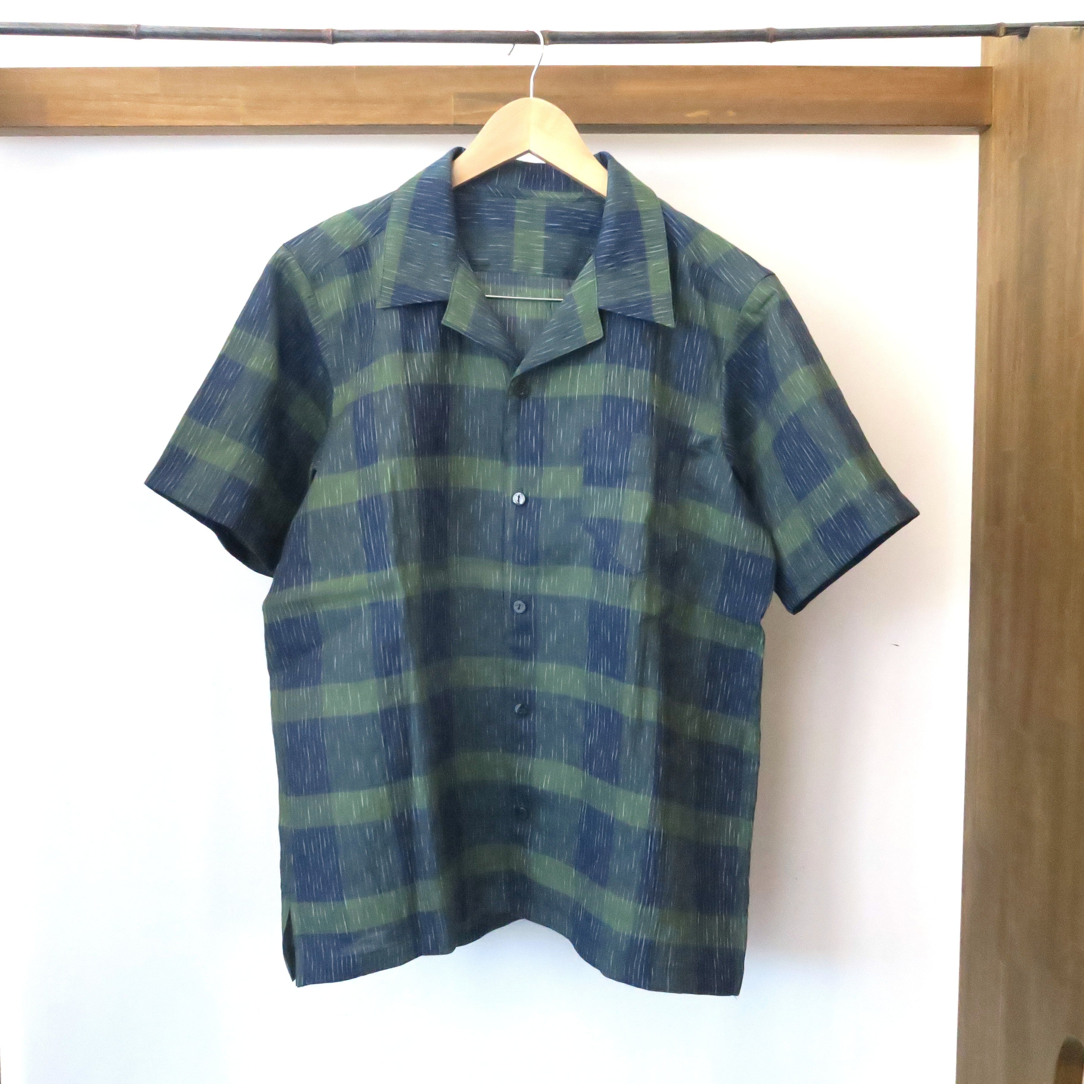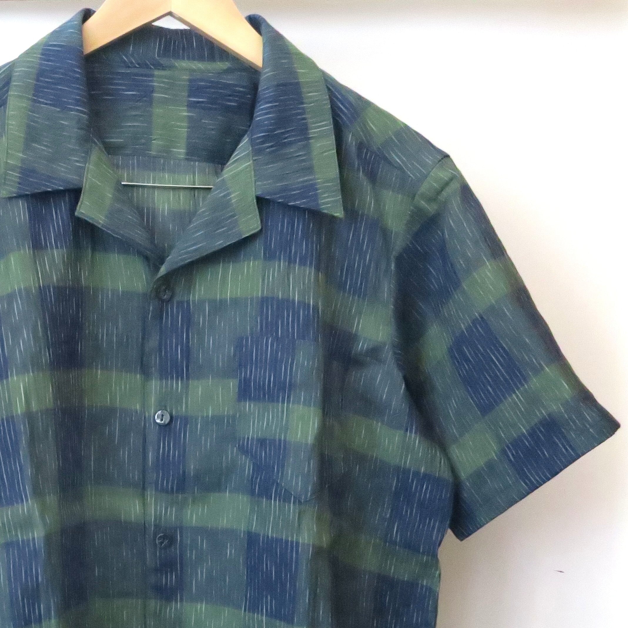【メンズ】【ラミー100% 近江ちぢみ】アロハシャツ グリーンチェック