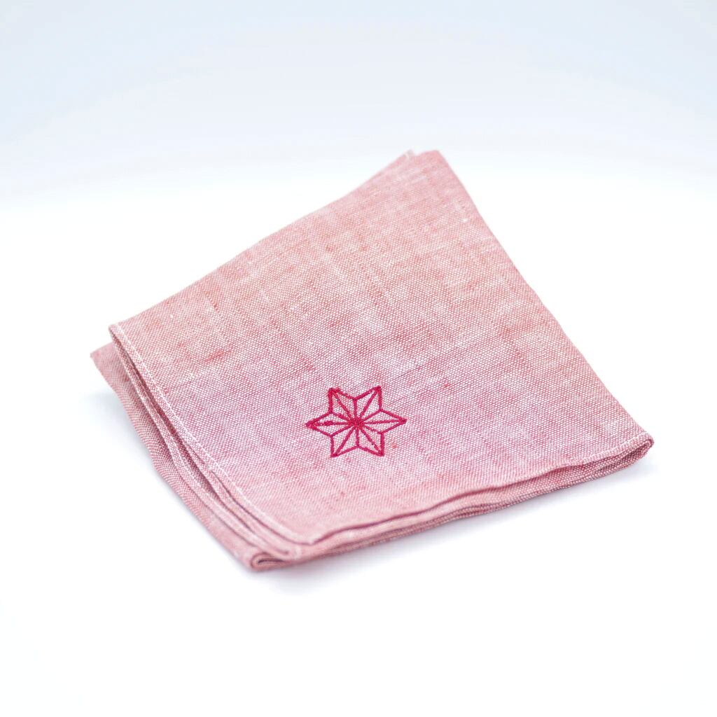 Omi-Jofu 麻の葉紋様 刺しゅうリネンはんかち【赤】