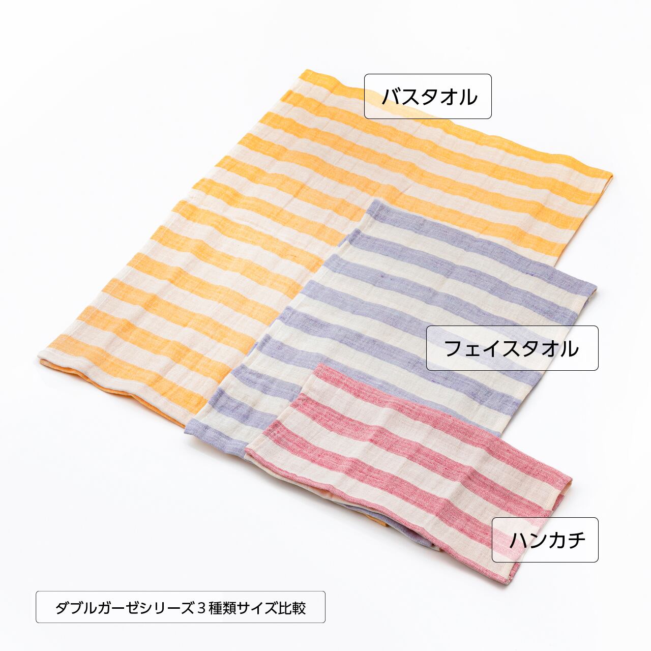 経(たて)糸にオーガニックコットン、緯(よこ)糸にリネンを使用したオリジナルのダブルガーゼ生地を、ハンカチサイズに仕立てました。